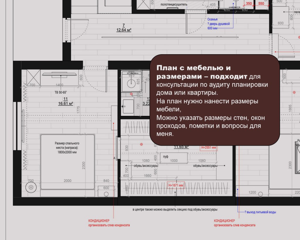 Не начинайте ремонт или стройку дома если в голове есть вопросы. Идеальный способ сэкономить, не наделать ошибок, не переделывать 100 раз – заказать у меня консультацию. Аудит планировки – самый короткий путь к началу ремонта.