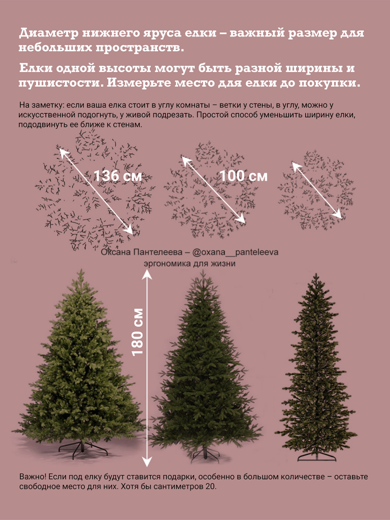Перед покупкой попытайтесь визуально представить или даже использовать временные предметы, например, нарисуйте елку на листе обоев, положите коробки, чтобы замерить место, которое займет елка в вашей комнате.