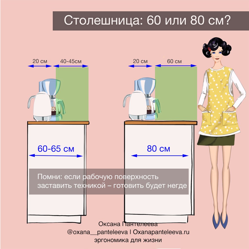- Что можно уместить на обычной столешнице, а что на глубокой.